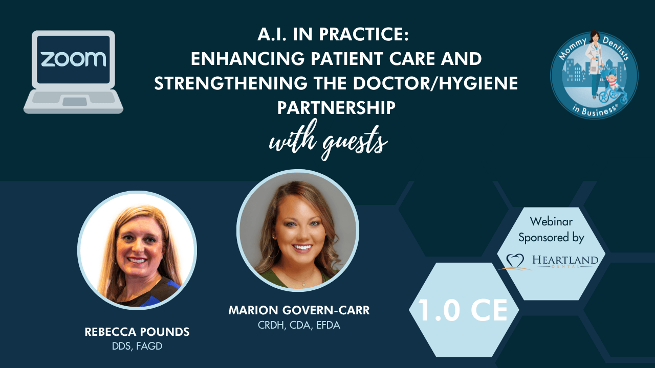ALL Mommy Dentists in Business webinars are FREE to official Mommy Dentists in Business paid members, and will have various prices depending on the CE credit for unpaid members.